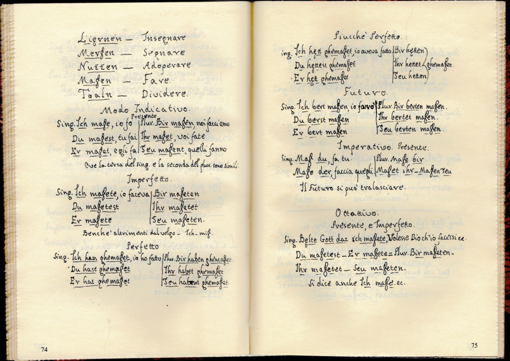 Due pagine della trascrizione dell’abate Dal Pozzo del manoscritto di grammatica cimbra dei Sette Comuni di Girardo Slaviero (1679-1753)