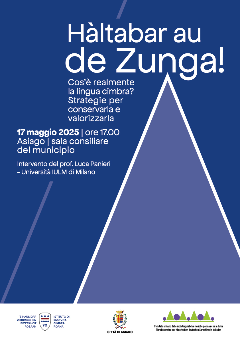 Di questo si parlerà il 17 maggio 2025, alle ore 17:00 presso la sala consiliare del municipio di Asiago, con l'intervento del prof. Luca Panieri (Università IULM di Milano), autore del nuovo dizionario e della nuova grammatica del cimbro dei Sette Comuni.